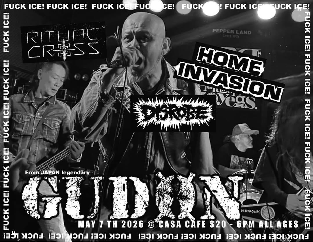 If you know someone who might like this kind of thing, feel free to pass it their way. Especially if they're someone who runs a label that likes to put out punk records, because we're deep into writing for an LP. And in show news that feels insane to type, we're playing with Gudon, the legends from Japan, at Case Cafe on May 7. This one will be bonkers. And, hey, here's a flyer for that one too!